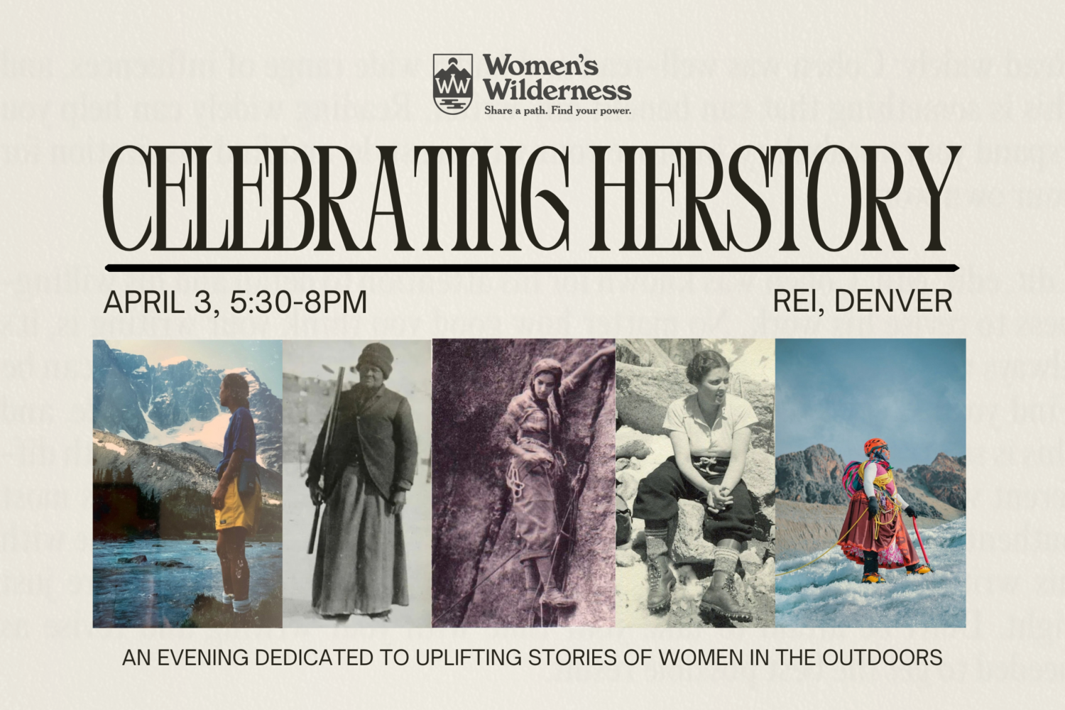 This event is a part of our Women’s Herstory Month fundraiser and challenge: walk 28 miles throughout March while raising funds for Women’s Wilderness.